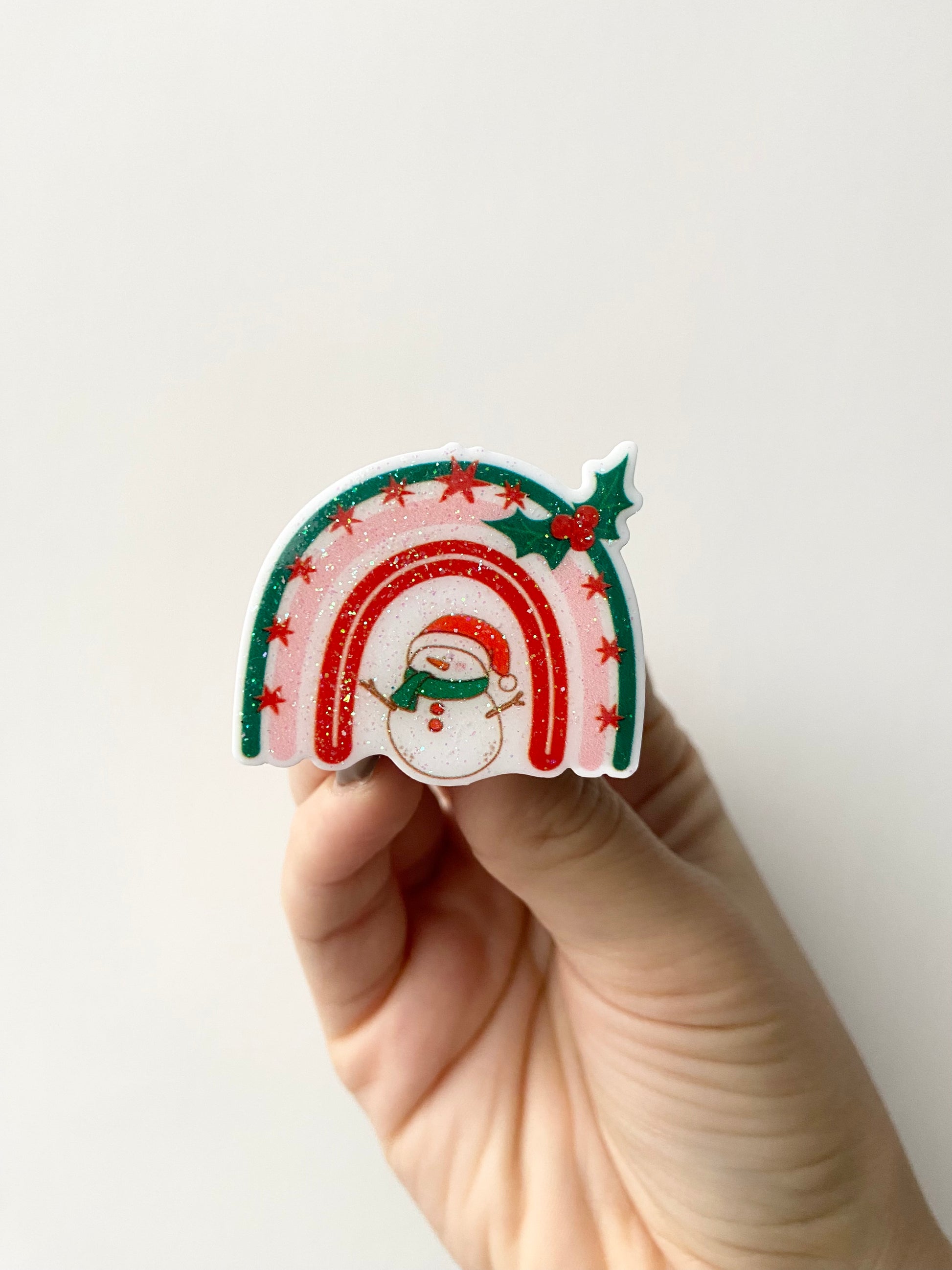 Holiday Rainbow and Snowman Plastic Badge Topper