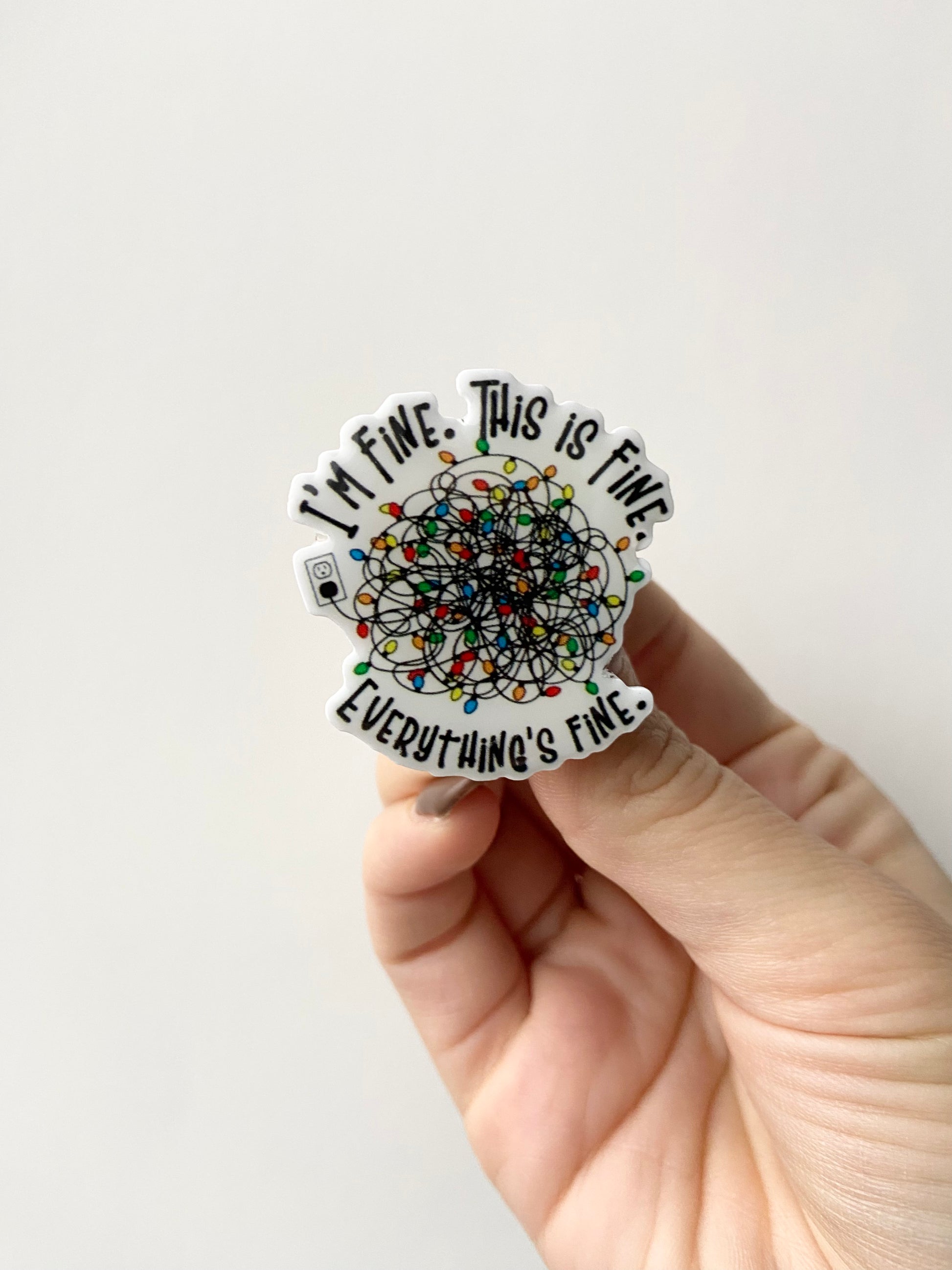 I'm Fine, Everything Is Fine Christmas Lights Plastic Badge Topper
