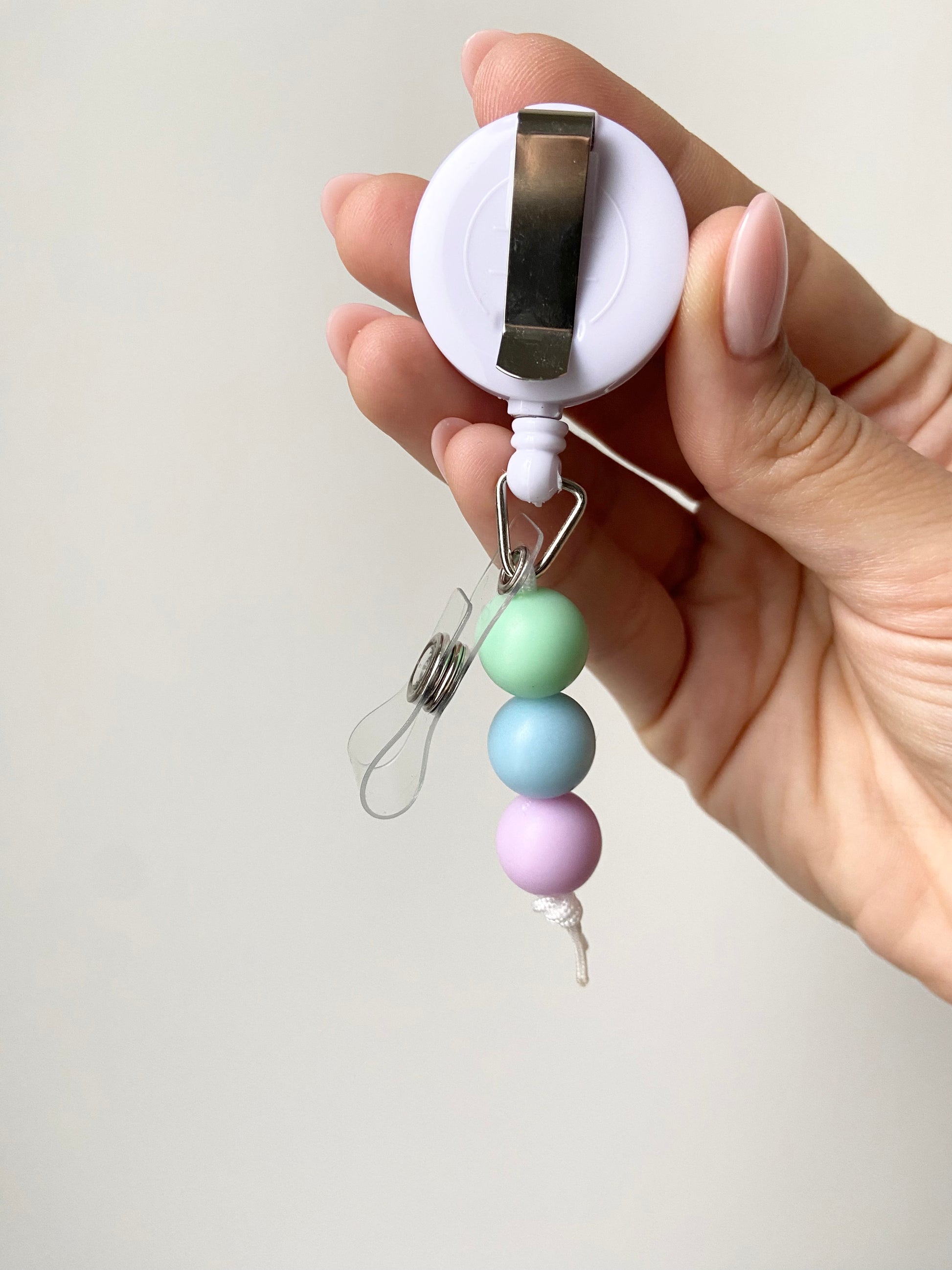 All beaded badge reels are handcrafted using a variety of quality beads in various designs. All badge reels come with 3M medical-grade velcro, making this reel interchangeable with badge reel toppers. The badge reel itself is belt-clip style.