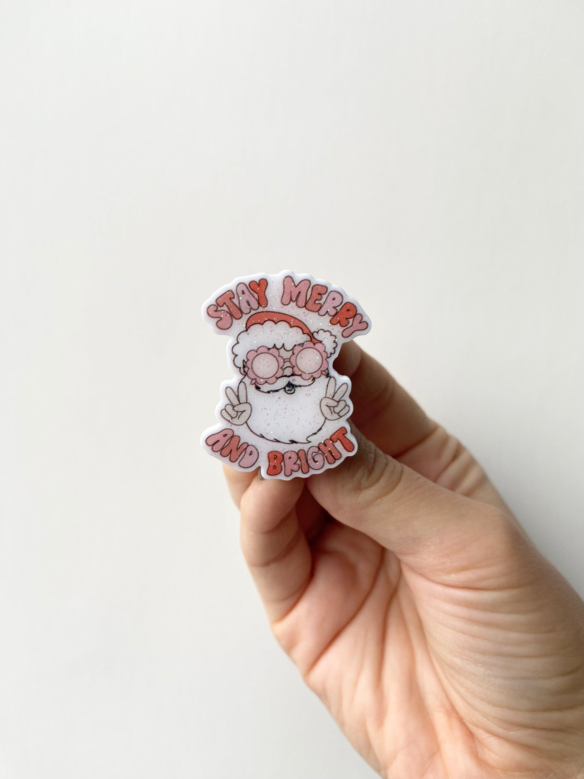 Stay Merry & Bright [Groovy Santa] Plastic Badge Topper